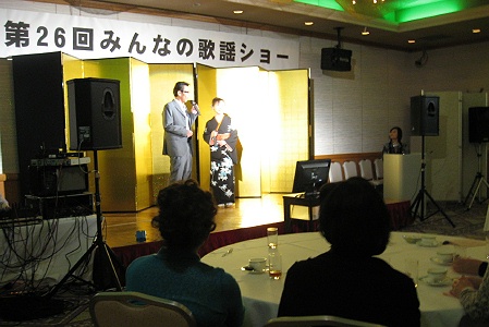 × [PR]上記の広告は3ヶ月以上新規記事投稿のないブログに表示されています。新しい記事を書く事で広告が消えます。 平成25年12月8日(日) グランティア小松で 第26回「みんなの歌謡ショー」を開催しました♪ 年2回行われる歌謡ショーも 早いもので今回で26回目になります☆ グランティア小松さんでは、 美味しいお食事を戴いた後、 歌うことの大好きな皆さんと一緒に また楽しい時間を過ごしました。 2013年もあと残り僅か。 お名残り惜しいですが、忘年会を兼ねての 「みんなの歌謡ショー」でした。 少し覗いてみましょう♪ オープニングは、嘉納ひろしの「銀座」を熱唱♪ マスター大澤明雄のご挨拶から始まりました。 次に登場は『アロハ・キングス』の流ひろしさん♪ 五木ひろしさんの「博多ア・ラ・モード」を歌って下さいました。 素敵でしたね☆ 同じく『アロハ・キングス』の星さとみさんは、 松浦ゆみさんの「涙のラブバラード」を熱唱♪ パンチのある歌声は聴いてて惚れ惚れするものがありますね。 素敵でした。 どうも有り難う御座いました☆ ここからはいつもお世話になってる常連さん☆ 皆さんそれぞれお気に入りの一曲を披露して戴きました。 Iさんは、 今年の5月、小松市民センターで開催した 第25回「みんなの歌謡ショー」のゲストで来て戴いた 日本クラウン渡辺要さんの「望郷月夜酒」を熱唱して戴きました。 Yさんは、 鏡五郎さんの「淡雪の橋」を歌って下さいました♪ 11番目のOさんは、 鏡五郎さんの「惚れて道づれ」を熱唱♪ そして、Uさんは今回の歌謡ショーの司会も 担当して戴きました。 どうも有り難う御座いました☆ 小林幸子さんの「大江戸喧嘩花」を熱唱♪ さて、ここで歌謡ショーお馴染みのメンバー 大澤明雄と「アロハ・キングス」の ハモリと美声に酔いしれましょう~☆ メドレー他、たくさんの曲を歌って下さいました。 会場の皆さん、うっとり酔いしれてますね♪♪ どうも有り難う御座いました☆ Yさんは、チャン・ウンスクさんの 「懺悔のブルース」を歌って下さいました♪ Tさん熱唱の、 渡辺要さんの曲「男の浮世川」も良かったですね☆ Iさんの やしまひろみさん「ひとり浜名湖」も素敵でした☆ Kさんは藤圭子さんの 「新宿の女」を歌って下さいました♪ 髪型といい、なんとなく雰囲気似てません?(笑) Tさんは、表現力たっぷりと 島倉千代子さんの「東京だョおっ母さん」を熱唱♪ 藤圭子さんも、島倉千代子さんも 惜しまれながらも今年、突然他界してしまいましたが、 彼女たちの残した名曲はこれからも たくさんの方に歌い継がれていくことでしょうね。 Mさんは みやさと奏さんの「かもめ町一丁目」を 歌って下さいました♪ 良かったですよ☆ そして最後のTさんは、 増位山太志郎「お前がかわいい」を熱唱♪ 素敵でしたよ☆ どうも有り難う御座いました。 第26回目の「みんなの歌謡ショー」も たくさんの方々に歌って戴きました。 それぞれ歌声や雰囲気に個性があり、 それぞれ選曲したメロディーで 華やかに舞台を演出して戴いたので、 見ていて楽しいものがありました。 皆さん、お疲れ様でした☆ ヾ(@⌒ー⌒@)ノ と思いきや、 ここでデュエットタイムが始まりました~♪♪ 即興でペアを組んでデュエット出来るのも 楽しいものがありますね☆ 「今夜は離さない」♪ 「銀座の恋の物語」♪ 「新宿そだち」♪ などを歌って下さいました。 ご夫婦で微笑ましくデュエット出来るのも 羨ましいものがあります。 素敵でしたよ☆ お料理も美味しかったですね☆ ご馳走さまでした❤ ヾ(@⌒ー⌒@)ノ さて!! 次回、第27回「みんなの歌謡ショー」は、 来年の2014年5月、 小松市民センターでの開催を予定しています♪♪ また大きな舞台でのそれぞれの素敵な歌謡ショー 楽しみにしていますね。 たくさんのご参加お待ちしています☆ 主催 椰子の実愛好会 PR |