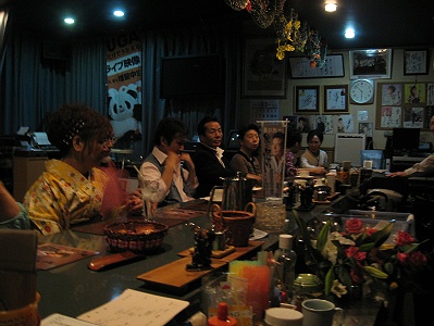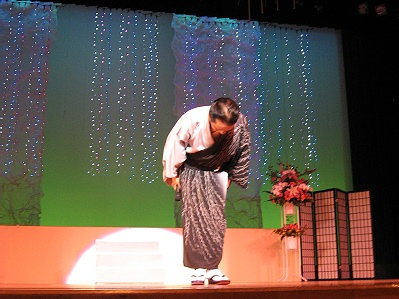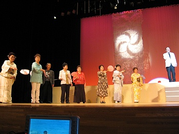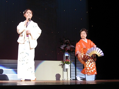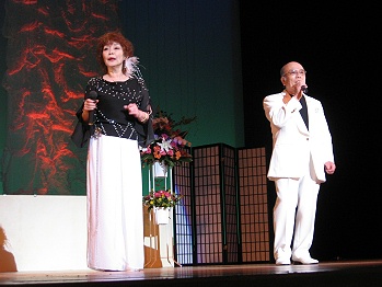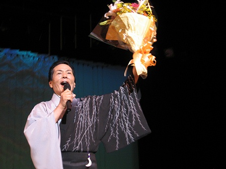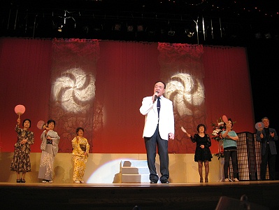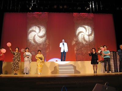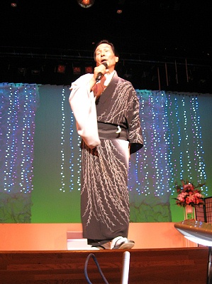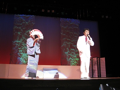 × [PR]上記の広告は3ヶ月以上新規記事投稿のないブログに表示されています。新しい記事を書く事で広告が消えます。 小松市民センターの大ホール会場に於いて、 第25回「みんなの歌謡ショー」を開催しました♪ 当日は、雲ひとつ無い青空お天気☆ 風は涼しく心地よかったんですが、陽射しは強く、 気温も夏日を超えて暑い一日になりました。 そんな中、当店主催の「みんなの歌謡ショー」も お陰さまで25回目を迎えることとなりました♪ 今回は新たに場所も変えて、大きな舞台をご用意しました。 皆さんでどんな楽しい時間を過ごしたのか、 お時間ありましたら覗いていって下さい☆☆ 舞台を覆い隠す大きな緞帳が上がると、 北島三郎さんの「まつり」♪の曲が大音量で流れ、ご挨拶がてら、 主催者である当店マスターの熱唱から「みんなの歌謡ショー」開幕です!! 歌うことが大好きな皆さんで 舞台を華やかに演出☆ 『祭』文字のウチワを揺らして 観てる観客側の心を躍らせてくれます♪ ヾ(@⌒ー⌒@)ノ さ、祭りが始まりますよお~♪ マスターに続いてトップバッターで舞台に登場はTさん☆ 五木ひろしさんの「べにばな」を歌って下さいました。 踊りは中村友宣さんです♪ べにばなは燃やす女のいのち花 愛の花 せつない忍び恋を熱唱♪♪ 曲に合わせて舞う踊りも素敵でしたね☆ 次に登場Nさんは、 福田こうへいさんの「南部蝉しぐれ」を熱唱♪ あれをご覧よ 真っ赤な夕陽 落ちてゆくのに まだ燃えている とがって生きろ 丸くはなるな 胸に聞こえる蝉しぐれ~♪ 素敵な曲でした☆ Yさんのドレスも凄く素敵でしたね!! 後ろの舞台照明もその曲に合わせて雰囲気作りをしてくれてます☆ 曲は、欧陽菲菲さんの「ラブ・イズ・オーヴァー」♪ 悲しいけれど 終わりにしよう きりが無いから Love is over 訳などないよ ただひとつだけ あなたのため~♪ 名曲です☆☆ Tさんの杉良太郎「すきま風」の熱唱も、 渋い素敵な声で酔いしれました♪ どうも有り難うございました☆ さて、ここでこの歌謡ショーではお馴染みの4人組、 大澤明雄とアロハ・キングスさんのご登場です!! 当店マスターの大澤明雄、そして、流ひろしさん、星さとみさん、 香月裕二さんの「アロハ・キングス」4人の美声のハーモニーは 何度聞いても心地よい夢ごこちにさせてくれるのが魅力です☆ 会場の皆さん、うっとりですね~♪♪ 今回は、「悲しくないわ」♪ 「お百度こいさん」♪ 「グッドナイト」♪の3曲メドレーと 「誰よりも君を愛す」♪を歌って下さいました。 そして、大澤明雄のオリジナル曲「夢の果てまで」♪も熱唱!! この曲は通信カラオケUGAにも入ってます☆ 覚えやすい曲なので、是非覚えて歌って戴けると嬉しいです♪ ちなみに『You Tube』のアドレスはこちら☆ Mさんは、川野夏美さんの「女の空港」を歌って下さいました♪ 帰らないで・・ 行かないで・・ 涙の向こうにジェットが消えて 明日からわたし 独りです 空港での見送り、また会えるか分からない一時の別れに 手を振る女性の姿がせつないですね。。 Oさんは、北山たけしさんの「希望の詩」を熱唱♪ 別れの曲なのに、弾んだテンポで歌う最後の歌詞がいいですね。 涙をふいて 歌おうよ~♪ 君とぼくの 君とぼくの 希望の詩を~♪ Yさんは、霧島浩二さんの「命を賭けた恋だから」を熱唱♪ 当店に霧島さんご本人が来た時、余程この曲に感銘を受けたのか、 溢れんばかりの笑顔で握手してたのを思い出します。 命を賭けた恋だから~♪♪ もうYさんお気に入りの十八番ですね☆ 夏川りみさんの「涙そうそう」の曲に合わせて 素敵な踊りを披露してくれたのは、友情出演して下さった 牧園踊り社中の皆さんです。 舞台が一気に華やかになりましたね!! オリジナル曲「郷愁・手取川」を歌って下さった Aさんの美声も素敵でした!! 素敵な着物で熱唱は、Kさん♪ 服部浩子さんの「明日香川恋歌」を歌って下さいました。 伽羅の香りの水明かり 揺れてただよう明日香川 詠み人知らずの恋歌に 命ひといろ 夢ひといろに 情しみじみ しみじみ きざむ夜~♪ 独特な歌詞も七五調を基本に、女性のせつない恋心を 文芸的に表現されてるのも面白いですね☆ Mさんは島津亜矢さんの「三味線やくざ」を熱唱♪ 生まれ深川 住吉育ち 辰巳芸者の 羽織の紐を解いて結んだ明鳥~♪ 途中、せりふが入るのもいいですね。 三味線の柄のMさんの着物もバッチリです!! 島津亜矢さんに負けない素晴らしいステージを見せて頂きました。 舞台照明に大きな月が・・ 野中彩央里さんの「夕月海峡」を歌って下さったのは、 ブルーの着物が鮮やかなKさん♪ このイベントも25回目になりますが、 ここまで見事な舞台照明に感動したことはありません。 どうですか?今までの舞台と今回の舞台。 次回はどちらで歌いたいですか? 完璧な舞台で歌える感動をもう一度☆ 春清さんの素敵な踊りもこの大舞台に 華を添えて下さいました。素晴らしい時間でしたね! Yさんのドレスも素敵過ぎてうっとりです♪ 清水節子さんの「